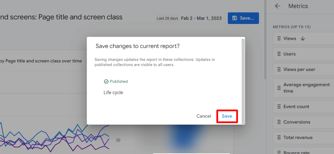 Step 6: Finally, a popup will appear asking if you’re sure you want to modify your report. Go ahead and click Save: