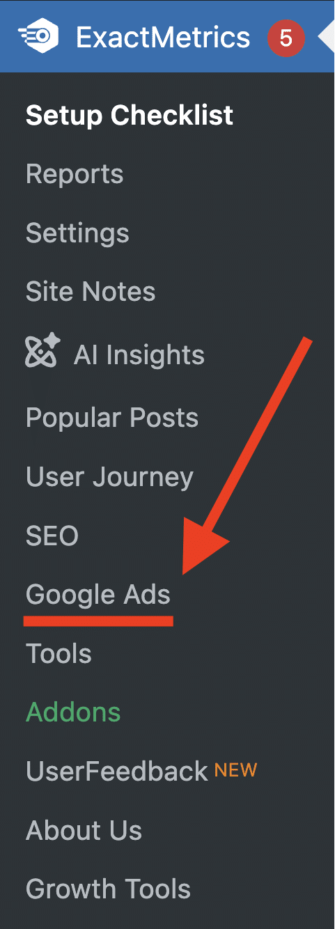 First, log into your WordPress dashboard and then navigate to ExactMetrics » Google Ads.