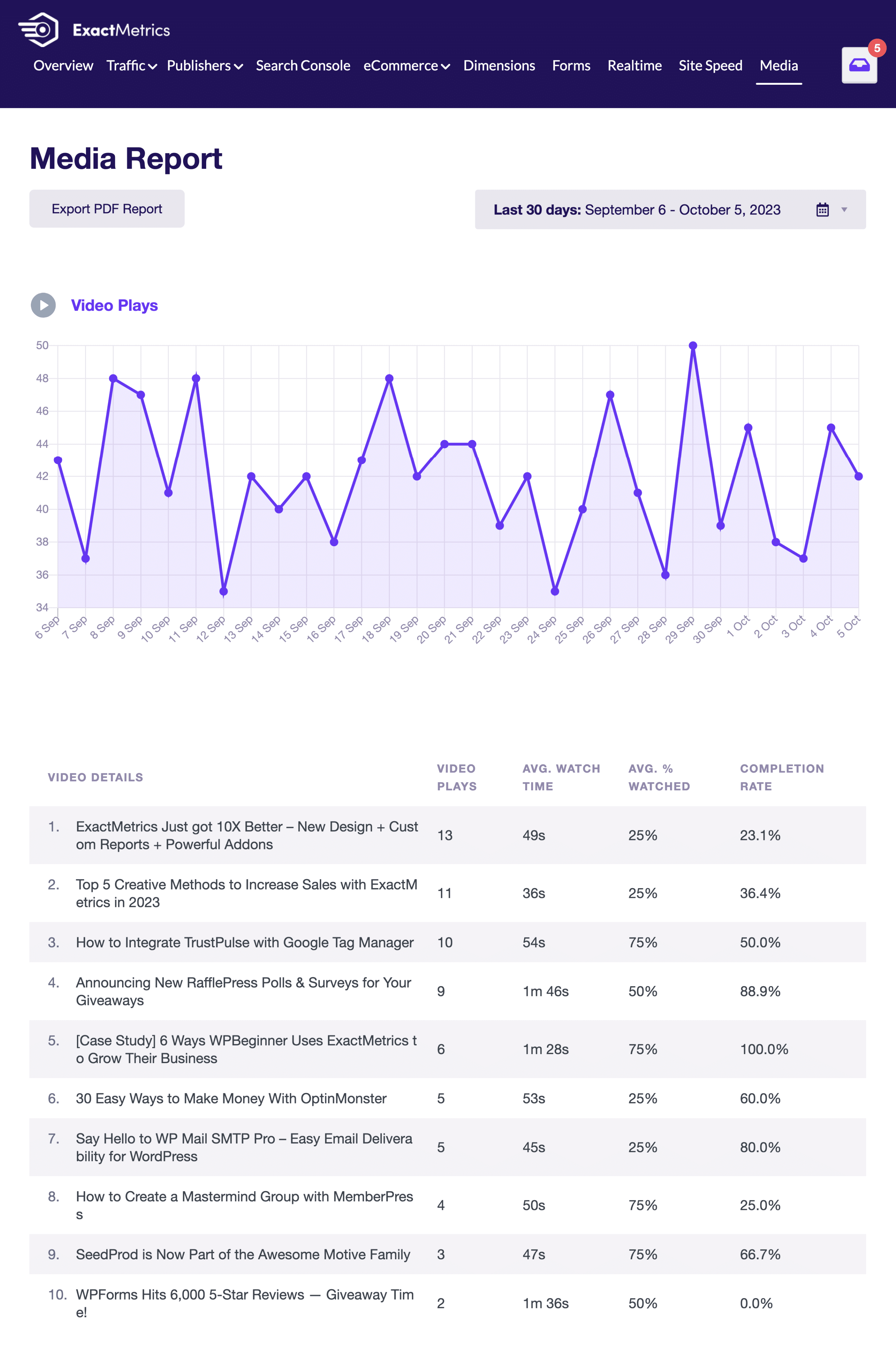 Are you looking to track the performance of embedded videos on your WordPress site? Learn how to view your ExactMetrics Media report, to easily assess the performance of your videos and media content within your WordPress dashboard.