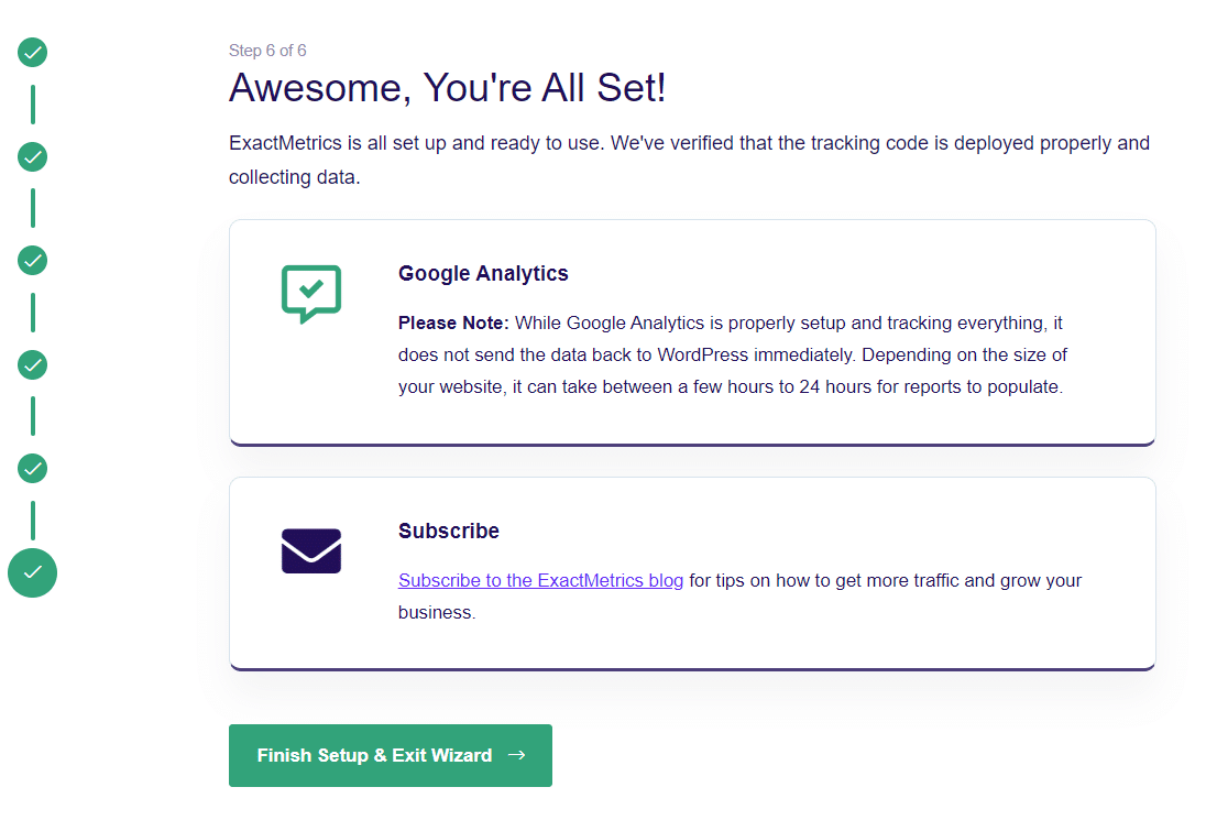 Next, you’ll be on the final set in the setup wizard. Click the Finish Setup & Exit Wizard button to complete the setup process.